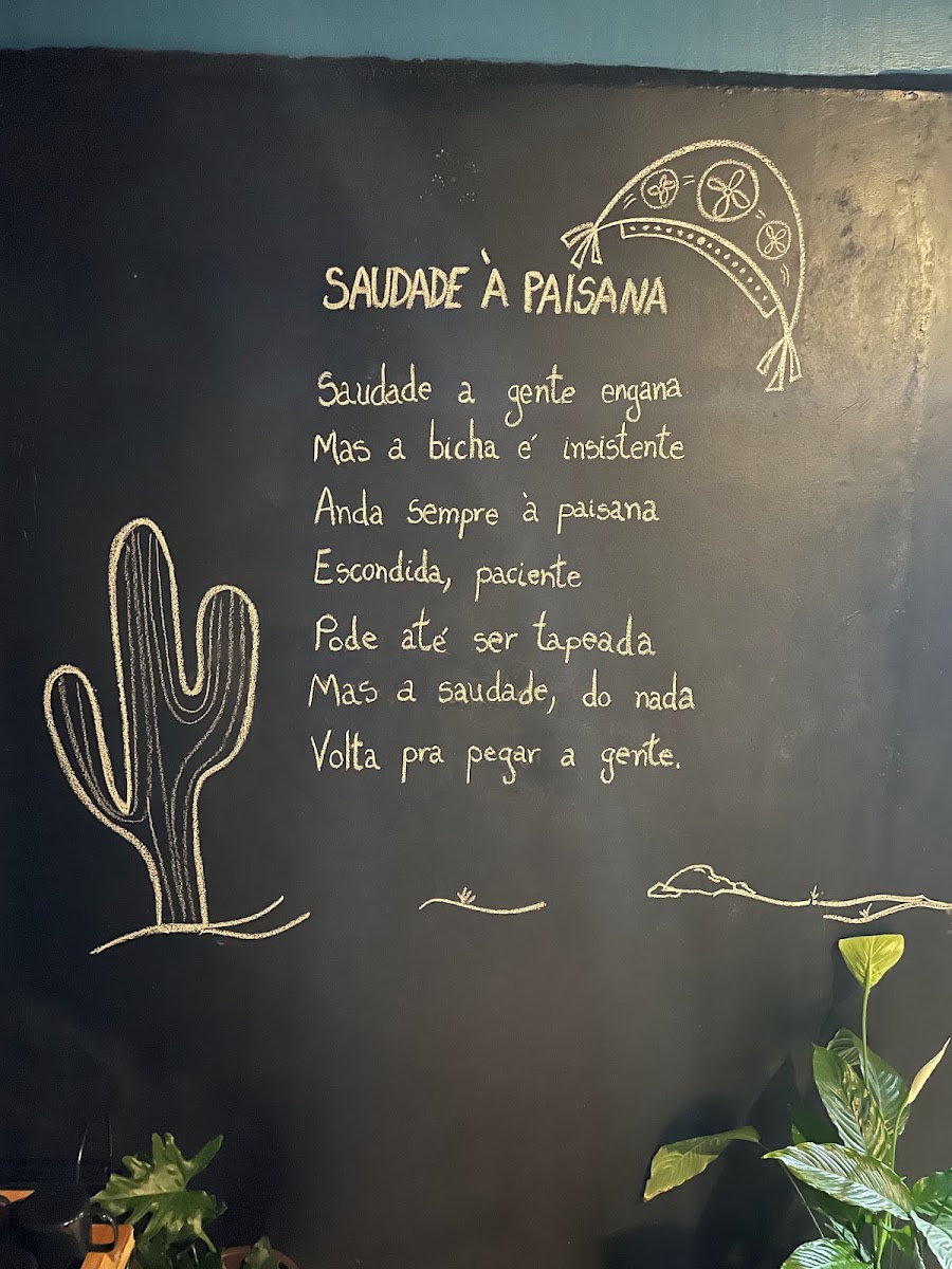 From a reviewer’s perspective, the menu at Odara Cafés Especiais offers a concise yet appealing selection that highlights both specialty coffee and comforting homemade treats. In the drinks section, the Espresso, Método V60, Método prensa francesa, Cappuccino, and Mocha chocolate showcase a strong focus on quality coffee preparation methods, appealing to both purists and those who prefer sweeter options. The sweets menu features traditional and homemade cakes such as Bolo de rolo, Bolos caseirinhos, and Bolos recheados, which pair perfectly with the café’s beverages and reinforce the artisanal feel of the place. For savory options, the snack menu includes the Sanduíche Magia Odara, Waffle de pão de queijo, and Quiches, providing satisfying choices for a light meal or brunch. Overall, the menu is simple but well-curated, balancing specialty coffees with homemade cakes and savory snacks, making it an inviting spot for both a quick coffee break and a relaxed afternoon treat.